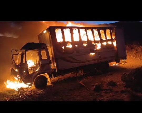 En Oruro: el CEO-LCC incineró camión con ropa nueva de contrabando